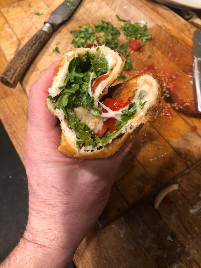 Secondly I consulted Vincenzo, what did he actually want in them? ‘Oh you know, some cheese, some ham, some greens’.